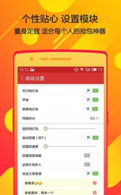 3、支持后台秒抢、网络优化、一键加速、自定义回复感谢语,并有个性化的排行榜。