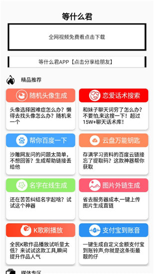 等什么君这是一款全新打造的工具盒子,软件内含非常强大的功能,在用户观看视频时想要将视频下载到手机上提供了很大的便捷,可以为你快速的去除短视频中的水印,包含了全网各大热门短视频平台,也可以在这里搜索全网的影视资源,给大家带来更加优质全面的观看体验。