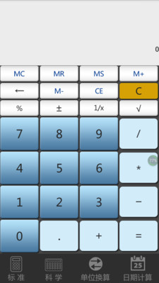 1、竖屏显示标准计算器,含加减乘除,开方倒数,支持显示12位数字,算术操作、平方根、百分比、记忆功能。