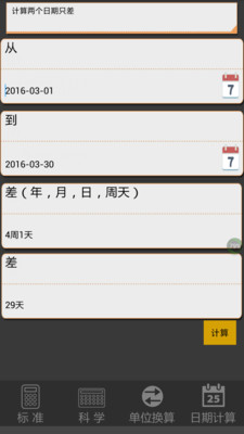 4、日期计算,内嵌日历器,可直接选择所计算的日期,快速便捷。