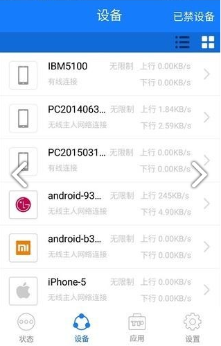 2、管理方法已连接机器设备,适用一键严禁网上、设置网上限定和网上带宽控制;