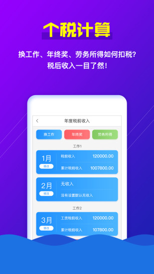 工资计算器是一款拥有多种功能计算器(工资计算器、个税计算器、年终奖计算、劳务报酬……)计算的实用工具;同时还附加社保查询,公积金查询,换工作等功能。