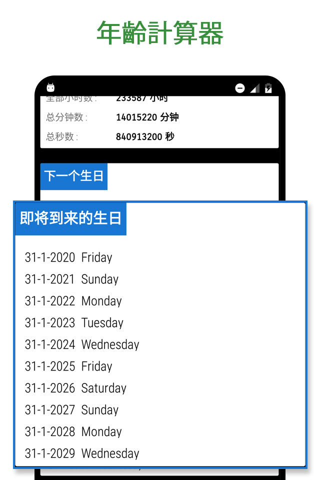 1、简单方便的操作功能,轻松计算各种年龄,纪念日等,让你不错过任何一天