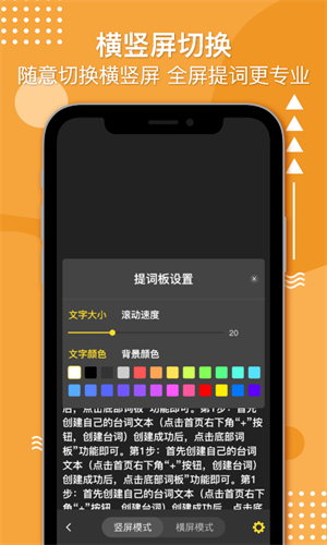2、支持横竖屏切换,自由调节台词滚动速度,适合不同语速需求;