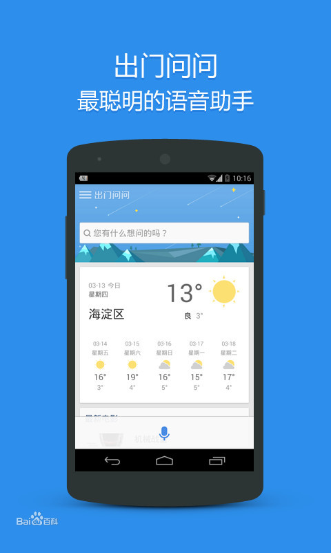出门问问app是一个智能语音助手服务应用程序,是懒人的首选,聪明人必备!有兴趣的朋友可以自己下载试验一下哦。