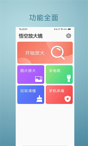 悟空放大镜是款超好用的生活服务类软件,它可随时将手机变成放大镜,无论你想要观看什么均可帮助你去查看,且还非常的小巧,对于老年朋友来说,在使用上还是比较方便的,可随意调解字体大小让内容更清晰展现在你的眼前。有需要的用户赶紧下载吧!