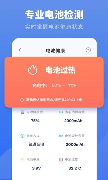 3.让手机电池更加健康的保持电池健康,用电量检测,还可以帮助我们快速的降温。