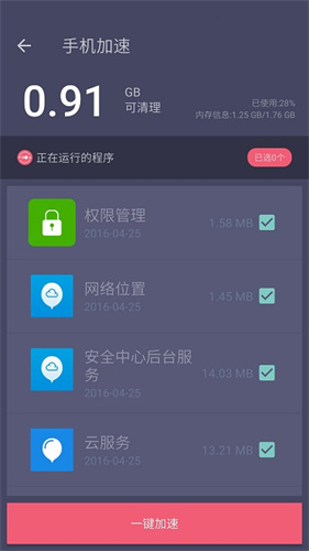 2、不仅能够清理手机中的垃圾,还可以帮助用户进行手机加速,让手机运行如飞;