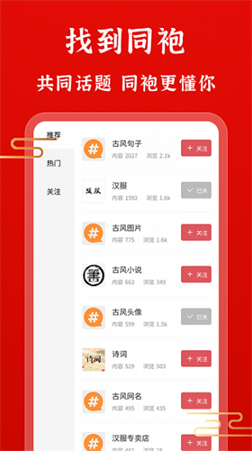 此款软件拥有各种汉服文化科普,让你更加了解汉服,且这里有和你一样喜欢汉服的好友,感兴趣的用户不要错过哦!