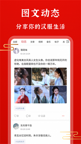 3.各个模板中汉服的内容可为爱好者提供相关的兴趣社区