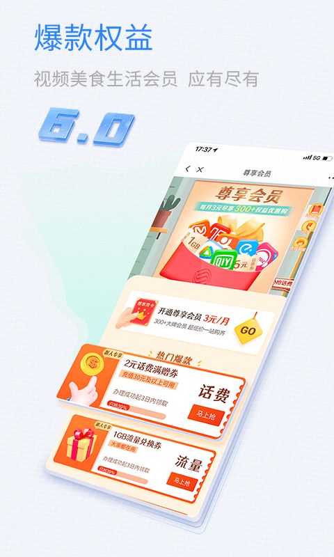 2.你可以在里面领流量、话费、积分,享受优惠。
