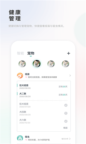 2.可新建信息进行更新和维护,也可进行疫苗和驱虫管理实现定期提醒