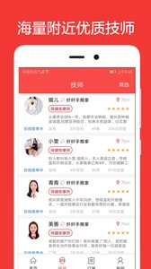 2:用户根据自己的位置来查看周边的在线的技师,一键完成预约。
