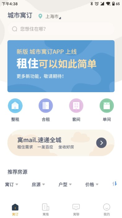 城市寓订租房这是一款非常优质的租房软件,每一个用户都可以在线查看大量的房源信息,根据自己对房屋的需求来进行预定,每天都会更新大量的房源提供用户进行参考,并且所有的房屋都是房东个人出租,没有任何的手续费用存在让用户可以更加安心方便地进行租房。