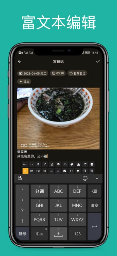 2:日记完成便签的添加,方便自己进行整理并随时查看。