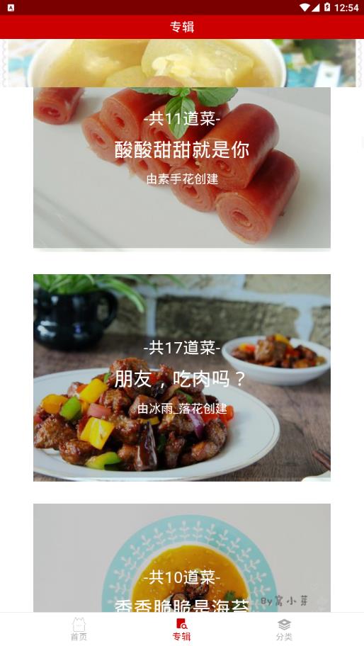 1:所有不同类型的美食菜谱都有详细的分类,便于查询。