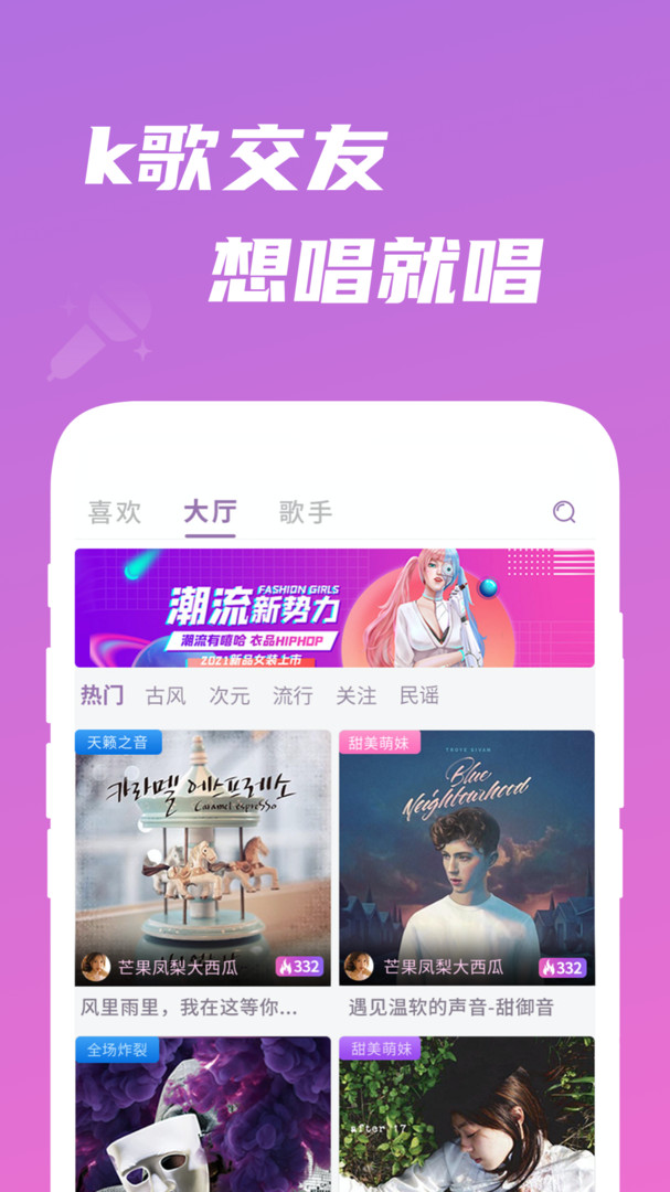 歌见APP是一款线上K歌软件,用户可以选择自己心仪的音乐进行高歌一曲,能够自由的发挥出多种唱功,打造出高质量的音乐,并且还可以与广大网友用户一起合唱,形成以歌交友,满足了大家在日常生活中的K歌需求。