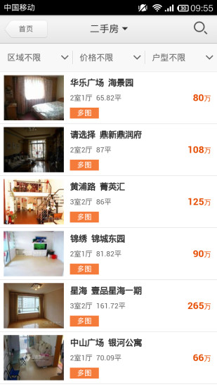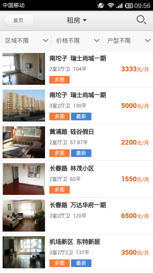 2.个性的房源类型筛选功能,可以根据房源区域价格户型来进行自定义筛选查找。