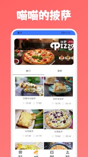 喵喵披萨是一款专注做披萨甜品美食的教学软件,如果你是一个喜欢吃甜食的小伙伴,那么这款菜谱教学软件你一定不能错过,它能提供更加丰富全面的甜品菜谱资源给你挑选学习,你今天想学习做什么美食都可以满足你,热门的甜品菜系都会为你推荐在主页当中,让你发现更多高人气热门的甜品美食,详细的教学方式让你轻松学会制作。
