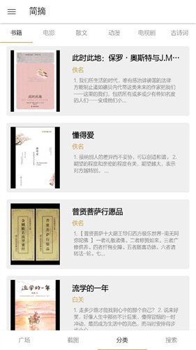 3.细致的内容分类可让你找到需要的语句,例如经典的书籍或散文等