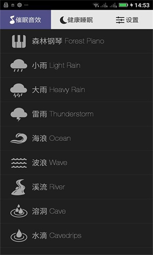 1.用非常多真实的声音让用户有沉浸式的感觉,帮助放松心情快速进入睡眠状态
