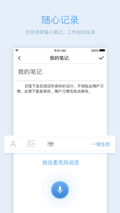 工作日志:首创“一键生成工作日志”。四象限中事务完成后进行勾选,晚上进行回顾总结。利用日事清一键生成工作日志,不用再苦思冥想“今天到底做了什么?”;