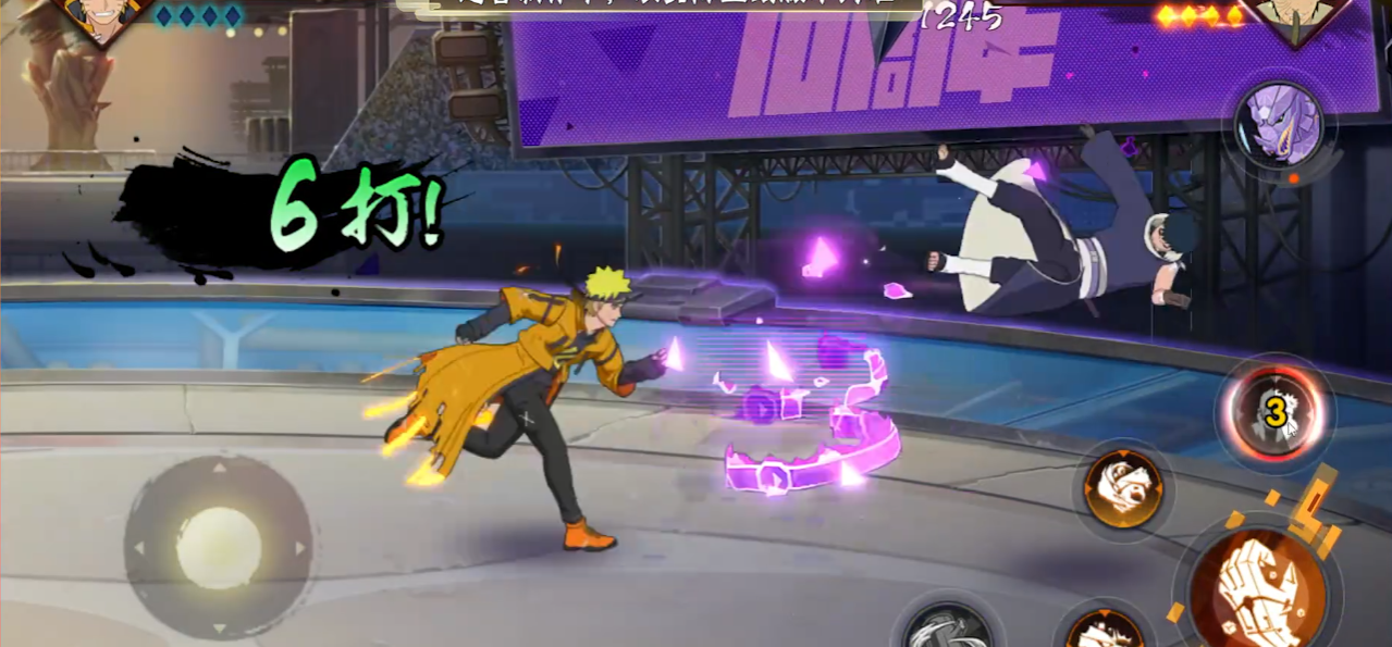 一技能九喇嘛向前连续攻击三次,二技能得手了有两段,点按释放技能一段开启得手了状态,技能进入冷却前点按二技能使用技能二段,向前瞬身抓取敌人,随后将敌人打飞,得手的状态下点击普攻,格挡前方攻击并攻击敌人,前摇阶段有短暂霸体,如果成功格挡攻击还会提升后续攻击的伤害。鸣人使用技能二段抓取敌人后划一技能地,抓取敌人后造成伤害。
