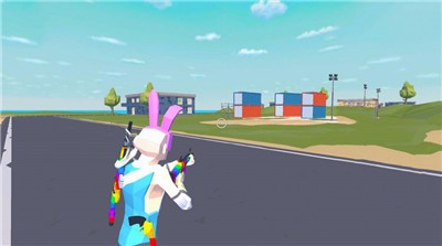 2、巨大的卡通世界可以让玩家四处冒险,游戏中的操作简单,收集更多的武器,玩家之间可以进行战斗;