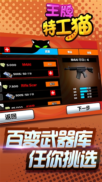 王牌特工猫这是一款非常新奇的枪战游戏,模式是有很多种的,玩家在这款游戏中可以感觉非常好哦,很有意思的游戏哦,你的玩法会很重要,还是讲究游戏的可操作性,有很多皮肤等着你去拿呢。这样的话,这个游戏会有很多有趣的事情发生。