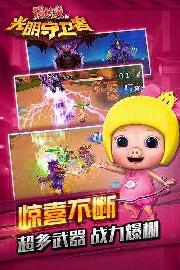 猪猪侠为大家准备了抵抗魔界入侵的武器,快来使用各种射击武器及炫酷技能消灭怪物,与猪猪侠一起并肩作战吧!游戏中,玩家将体验到紧张刺激的战斗场景,同时还能解锁多种强力武器和技能,提升战斗力。每一场战斗都充满了挑战与惊喜,玩家需要灵活运用策略,才能击败强大的敌人,守护童话世界的和平。