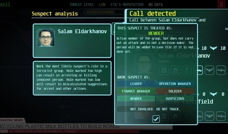 反恐组织是一款模拟真实网络反恐战略的商业游戏,如何在游戏中防范国际恐怖袭击?利用现代监控技术收集情报,寻找恐怖网络头目,防范灾难,决定谁需要监控,谁需要从地球表面消失,在世界各地寻找ISIS特工,打击极右翼激进分子,揭露邪教毁灭世界的邪恶计划,有时很难做出决定,但需要快速准确地作出反应。恐怖分子还潜伏在附近。