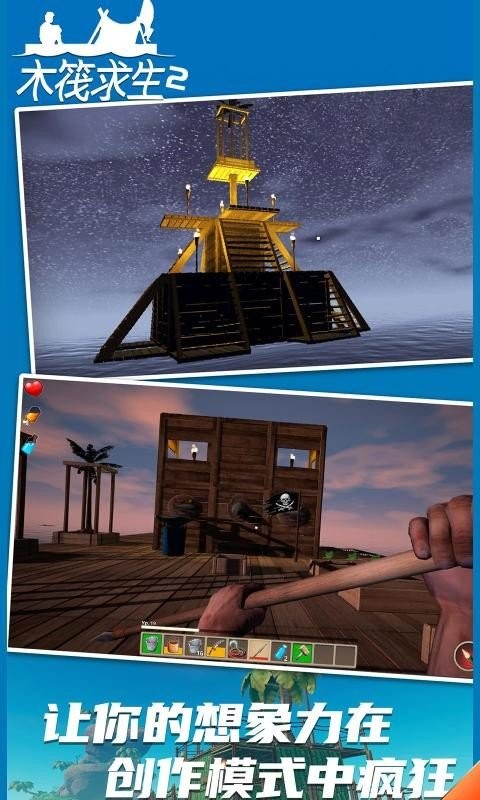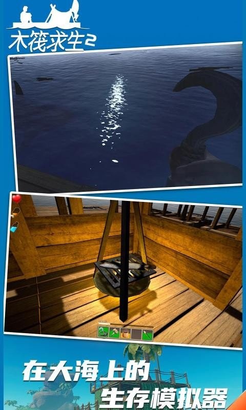 木筏生存2是最新的在线木筏求生冒险手游,游戏作为第二代,完美延续了前作的精髓,在更多的细节和画面中提炼,更多的生活方式,更多的危险扑面而来,你需要做的就是奋力求生,可以收集漂浮的木头、树叶、塑料等材料,扩大你的小船,捕鱼作为自己的生存口粮。