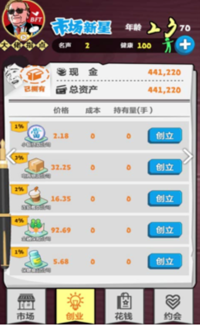 巅峰赢家是一款非常随意的模拟操作游戏,采用了非常可爱的画风,玩家还将扮演非常优秀的富二代。不仅有非常丰富的商业模式供玩家选择,还有许多不同的项目等待玩家投资。在这里,玩家需要有独特的投资眼光,快速无情的投资手段。只有这样,我们才能抓住那些有利可图的投资项目,扩大他们的资产。