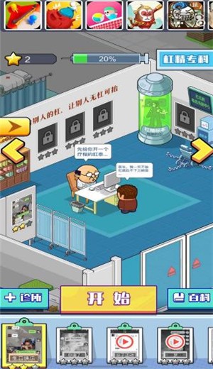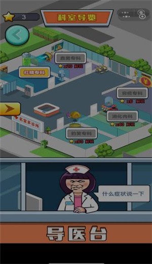 1、医院每个科室都有很多对应的关卡,完成挑战后获得的明星可以解锁全新的科室。