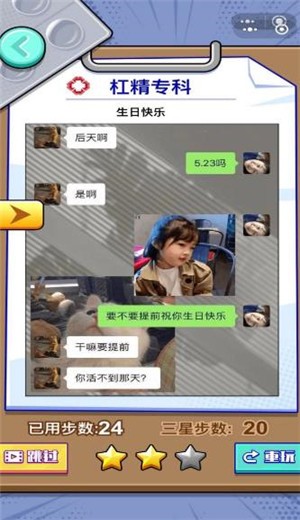 2、每个场景都很有创意,不同的聊天梗组成游戏,带给大家不同的搞笑剧情和挑战。