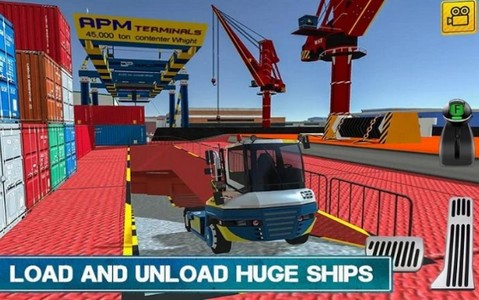 1、玩家驾驶自己的卡车在港口停放,在船舶卸货后,玩家需要加载货物运输任务!