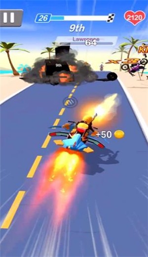 飞车竞速是一场刺激有趣的速度游戏,驾驶酷炫的摩托车与其他对手同台竞技,在对决中手持各种酷炫武器骚扰,游戏场面十分激烈。参考暴力摩托的玩法,以3D卡通风格呈现,每件武器都有自己的攻击特效,飙速场面十分激烈耀眼。
