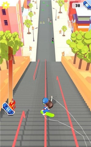 2.游戏道路丰富多样,地形起伏不断,带来真实的滑板滑行体验,而且滑行速度时快时慢。
