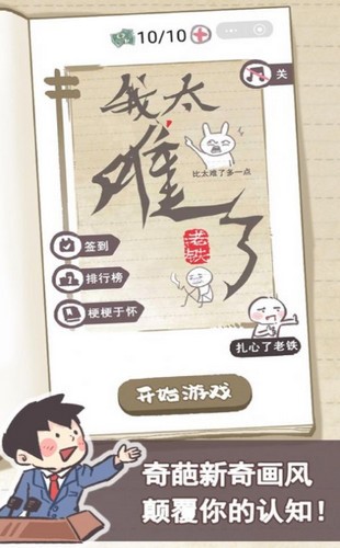 游戏中的每个关卡都很难,表情包的管理也很神奇。游戏画面非常简洁精致,超多个关卡可以自由挑战,每个关卡的难度都会不断增加。比赛时间没有限制。无聊的时候玩个游戏。它可以帮助你打发无聊的时间,玩得很开心。