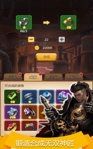 2、神器锻造,不断挑战神器任务,以达到所期望的神器,最终排名终极装备和卡片,成为真正强大的霸主。
