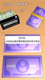 独特的点钞眼光,玩家可以学习各种不同的点钞技巧,每个关卡对玩家的精度和时间要求也不一样。玩家要在规定时间内点钞票才能完成过关,游戏相当有趣。