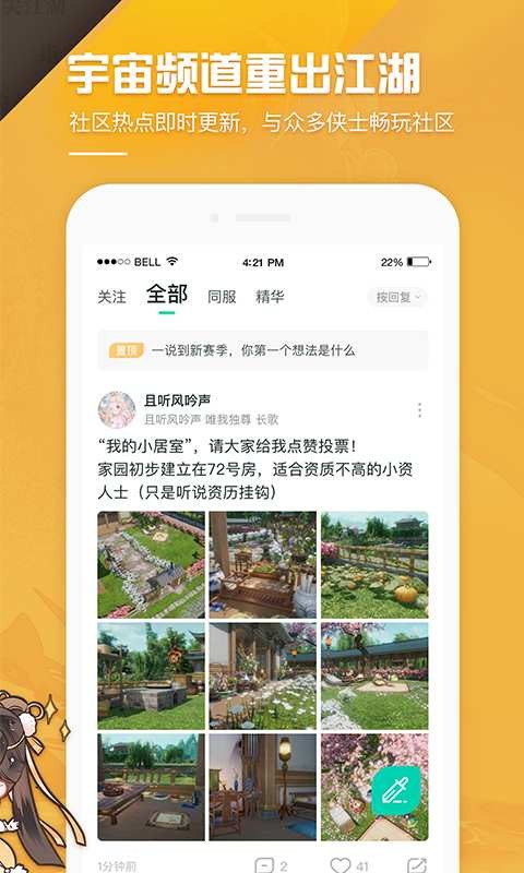 剑网3推杆手游是剑网三旗的社区平台,玩家可以在这里找到属于自己的学校,与朋友聊天讨论各种武术达人,在这里还可以与其他学校的人交流,了解对方学校武术的优劣势,还可以探寻历史等。让你的武侠轻松找到属于自己的学校,剑网江湖让你更有归属感,游戏信息实时更新,玩家可以关注每段时间的游戏新闻,如果信息第一时间更新推送知道,和朋友一起报名参加最新的侠客大赛,这个江湖越来越有意思了。