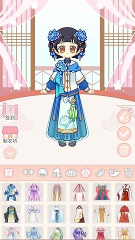 以古宫廷为背景,玩家需要从巨大的古装、发饰中选择自己喜欢的道具,搭配出各种漂亮的游戏角色。