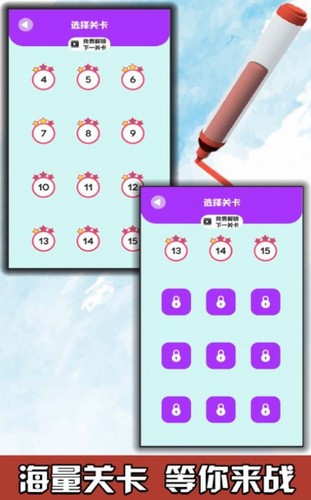 这里简单的绘画过程,简单的画面,完美的视觉体验,就可以轻松实现这款游戏的任务。百余个精心设计的关卡,创意智慧,开发您的创造力,充分发挥您的创造力。在简单使用的挑战中,很多游戏都可以解锁,体验不一样的丰富趣味升级。