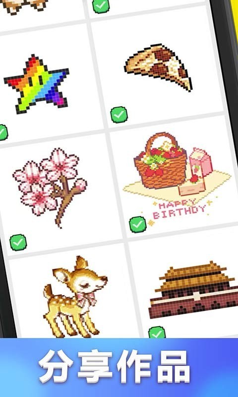 每张图片都被划分为无数个像素方块并进行编号,因此玩家可以轻松地为其上色。玩家可以从各种有趣的图片中选择,只要它们是由数字着色的。重新探索绘画乐趣,随时随地轻松绘画,完成更多精彩挑战。你将把各种简单的图片带到生活中,展示你更灵活的思维能力。展示你的创造性思维,用你自己的想法来画画,让你的作品更完美。