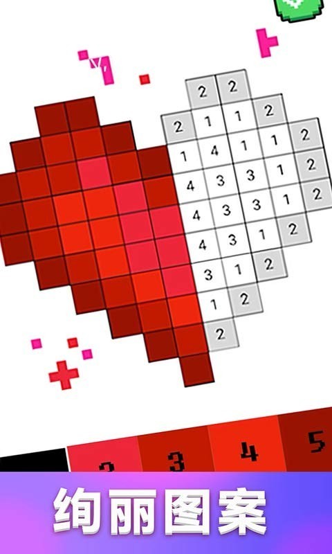 2、点击像素区域,不同的数字对应多种颜色,你需要填充所有的颜色;