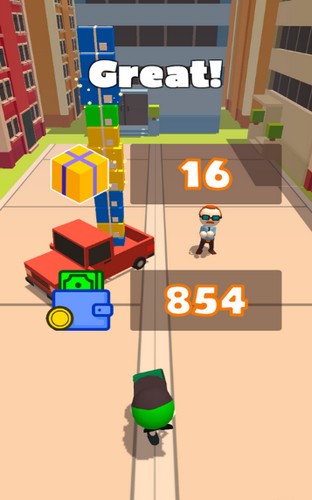玩出最有趣的闯关方式,挑战更多任务,用自己的脑力完成任务。游戏中有两种颜色的商品,不同颜色的商品交给不同的收货人。当心路上的车,收货时小心不要被车撞到。