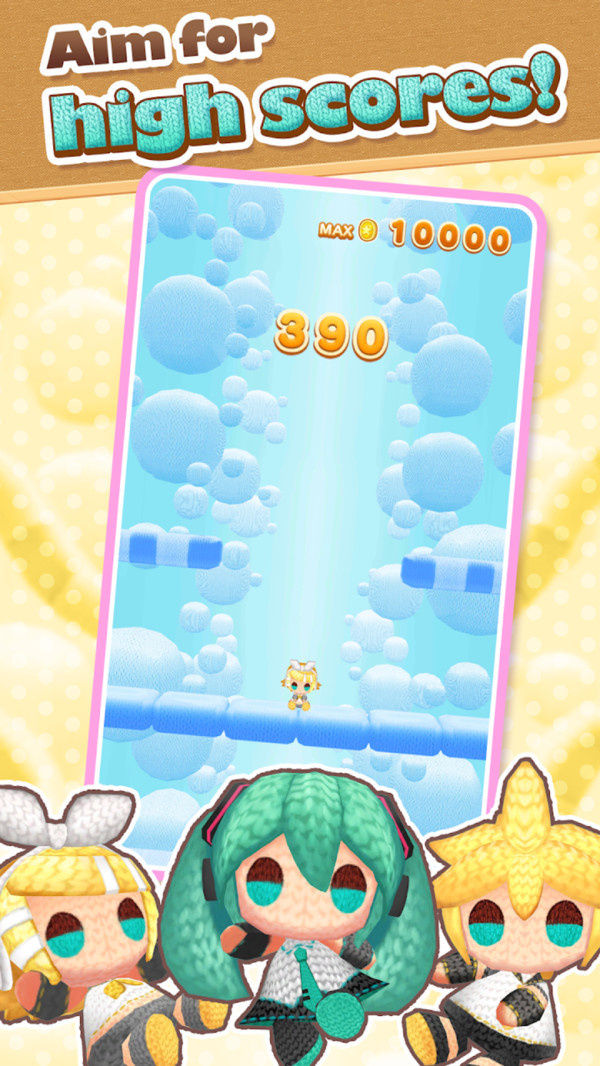 初音未来跳跃是一款超级好玩的休闲小游戏,适时按下屏幕,让初音未来在游戏中跳跃,避免游戏中的各种危险,让初音未来成功跳跃到顶端。超级有趣的游戏玩法,各种萌萌哒的小人等你解锁,初音未来、镜音双子等都会出现在游戏中,陪伴玩家一起玩耍,开启一场超级有趣的挑战。