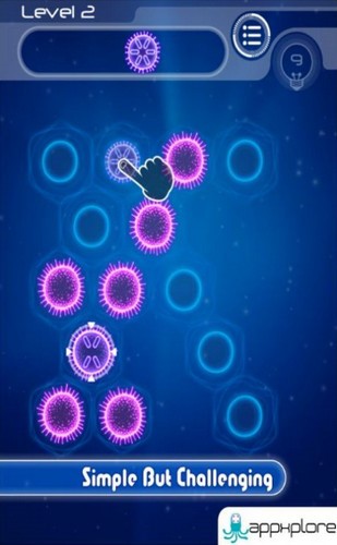 点亮细胞是一款非常简单的休闲益智游戏,清新简约的绘画风格,玩家用手中的细胞点亮所有的细胞,用特殊的孢子点亮所有的细胞。以充满未来色彩和生物细胞的图片为主题,尽可能点亮每个细胞。