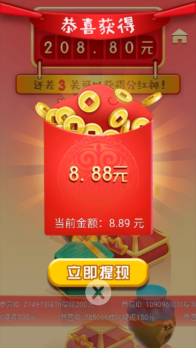 红包版的财神是一款非常休闲的游戏,你玩这个游戏的方式很简单。你可以很容易地感受到他们在其中的乐趣,这也是一个非常有趣的过程。你需要点击并按下,这样就可以在游戏中完成操作,一直跳下去就可以赢得游戏的最终胜利。当然,以后会越来越难!